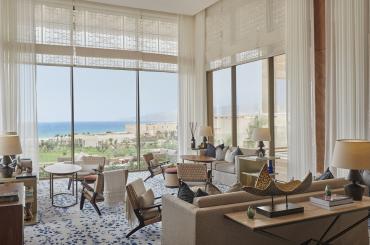 Le Ritz-Carlton Rabat, Dar Es Salam est un hôtel 5 étoiles niché au cœur d'une palmeraie luxuriante, à proximité immédiate du prestigieux Royal Golf Dar Es Salam. Il propose 117 chambres et suites élégamment décorées, toutes avec balcon ou terrasse. L'établissement dispose de deux piscines (extérieure et intérieure), d'un spa de 2 600 m², d'un centre de fitness, et de plusieurs restaurants aux cuisines variées. Les golfeurs bénéficient d'un accès privilégié à trois parcours de golf, dont deux 18 trous. Un lieu d'exception mêlant luxe, détente et passion du golf. Les vastes espaces extérieurs