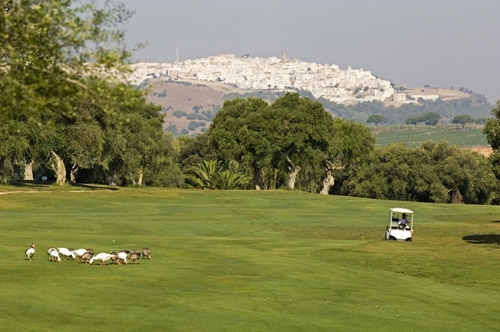 Un parcours de golf de haut niveau, voilà ce qu'il est, et le personnel responsable fait tout ce qui est en son pouvoir pour le maintenir dans cet état. C'est ainsi qu'on contrôle en permanence si le nombre de joueurs n'est pas trop élevé, pour que chaque hôte puisse jouir de façon optimale du jeu et de l'environnement, sans se sentir bousculé. Les cerfs et les mouflons qui gambadent ici ont exactement le même sentiment. Les cigognes et les aigles vous survolent et vous observent avec scepticisme depuis la cime des chênes ou des pins qui délimitent les larges fairways. Le splendide clubhouse en style andalou épouse parfaitement le caractère de ce parcours et vous offre en outre un excellent repas après les performances sportives.