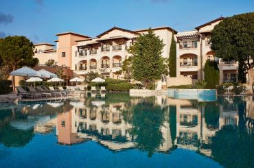 Splendide hôtel de grand standing, idéalement situé à côté du non moins exceptionnel Aphrodite Golf et à deux pas de la mer. Des chambres Garden or pool view standard de très bon niveau des chambres supérieures avec piscine privée ou les clubs de luxe avec Jacuzzi extérieur privé... Un service à la hauteur de l'établissement.... Private lounge pour les occupants des chambres club et suites. Un must ! A partir de 1100 euros p.p. en chambre double pour 7 Nuits, 5 Green Fees.