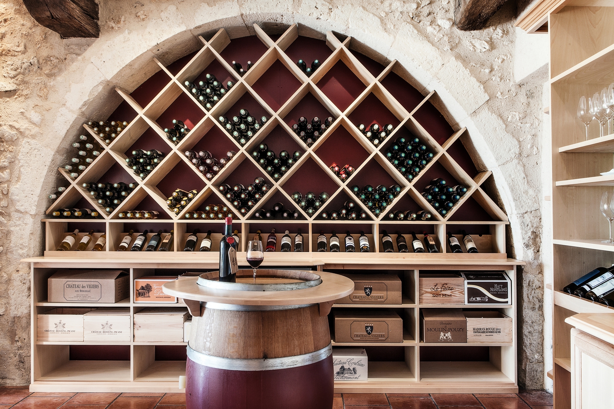 Brasserie "Le Chai" (spécialités locales), restaurant "Les Fresques" , étoilé Michelin depuis 2014, ouvert du 8 Avril au 10 Novembre (produits frais et régionaux en respectant saisonnalité et qualité) et bar "le 19" ouvert d'Avril à Octobre