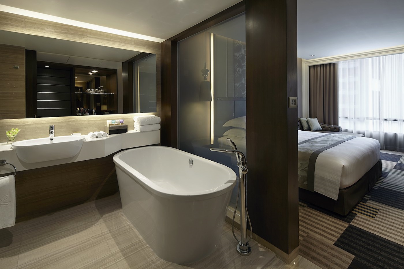 De base: Décoré avec goût en utilisant des tissus modernes comme la légendaire soie Jim Thompson, les chambres Premium offrent une généreuse chambre de 26-34 m² et une salle de bains joliment équipée. Parmi les autres points forts, citons le diviseur de salle IG Glass avec capacité de contrôle automatique et le hub multimédia avec technologie d'écran tactile. Toutes les chambres Premium comprennent un accès Internet Wi-Fi gratuit, un plateau / bouilloire et de l'eau potable gratuite en chambre.