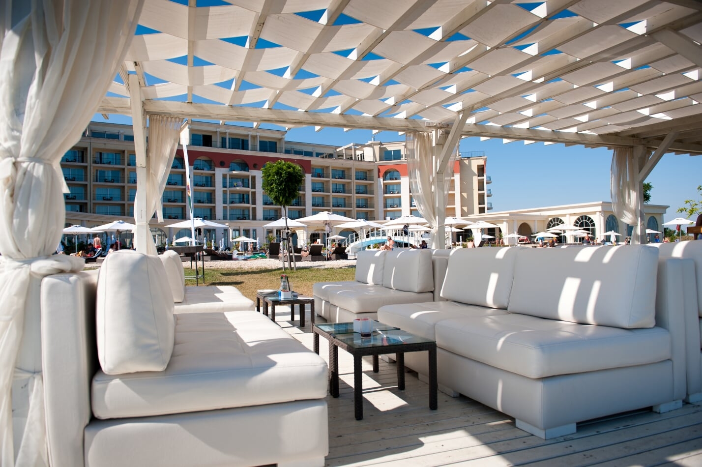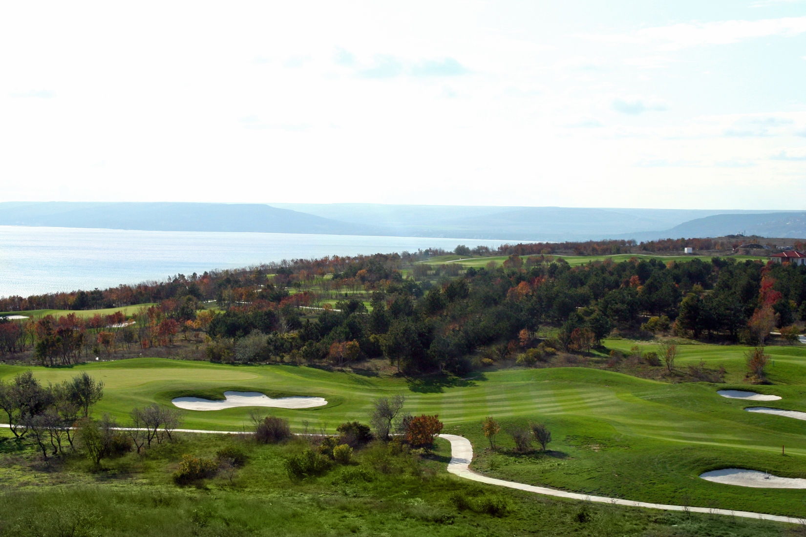 Cet hôtel surplombant les eaux turquoises de la mer noire possède tous les atouts nécessaires pour satisfaire la grande majorité d'entre vous, les 3 parcours construits sur place et à proximité font de cette destination un must pour les amateurs de beaux golfs. Outre les excellents 18 trous sur site dessinés par Ian Woosnam, vous vous éclaterez complètement sur deux parcours d'exception dessinés par Gary Player. Le Blacksearama une perle rare avec de très jolies vues sur la mer noire et Thracian Cliff. Retenez ce nom, car en Europe, c'est sans conteste, l'un des parcours le plus spectaculaire que vous pourrez jouer…A couper le souffle, indescriptible, c'est tout bonnement FABULEUX et Gary Player …est du même avis, il le considère tout simplement comme le nouveaux Pebble Beach …! Pour vous remettre de vos émotions, n'hésitez pas à faire un petit tour à Balchik, un port de pêche et une petite station balnéaire un peu désuète mais valant un petit crochet, à 10 minutes en voiture…dépaysement garanti ! Le personnel accueillant fera tout ce qu'il peut pour vous servir en anglais et la cuisine est tout à fait agréable. Si vous cherchez un steak tartare, vous n'êtes pas à la bonne adresse, nous sommes en Bulgarie, il faut se laisser aller un peu et changer ses habitudes. Une destination à découvrir sans plus attendre de mi-avril à mi- octobre.