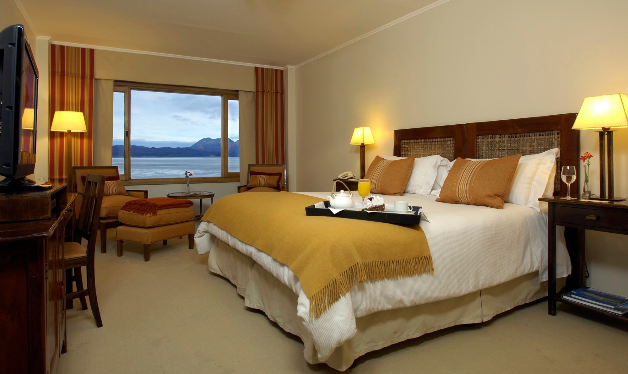 Los Cauquenes, l'unique Resort & Spa haut de gamme sur la plage du Channel de Beagle , avec les sommets enneigés de l'imposante chaîne des Andes derrière et à seulement 7 km de la ville d'Ushuaia, l'Hôtel dispose de 54 chambres et suites, accès direct à une Plage privée et une vue exceptionnelle de toutes les chambres de l'Hôtel.