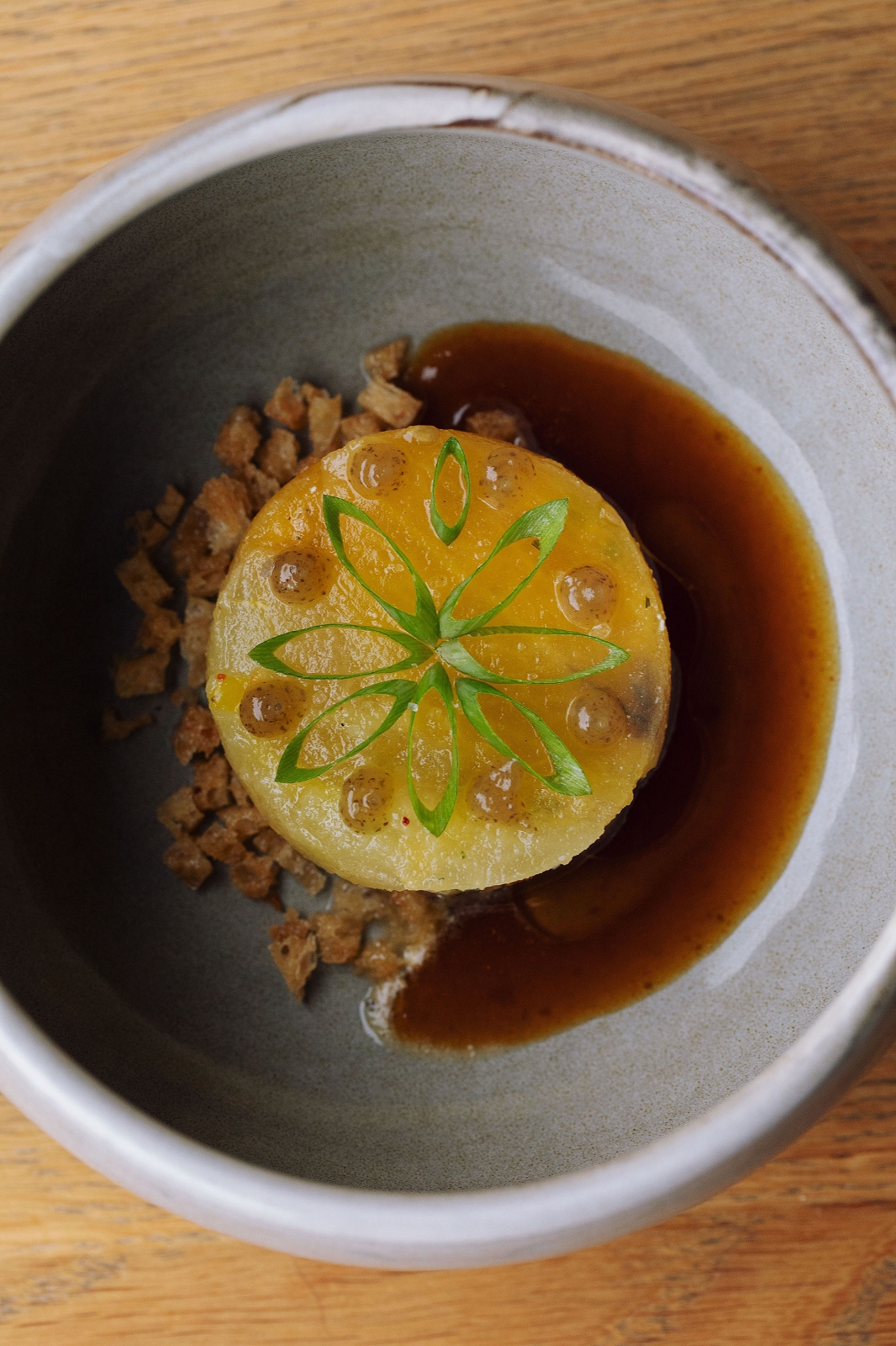 Restaurant gastronomique Pollen : une expérience culinaire plus intime et sophistiquée, où chaque plat est pensé comme une création mettant en valeur les saveurs authentiques de la région. Une table qui invite à la découverte, dans un cadre élégant et épuré.