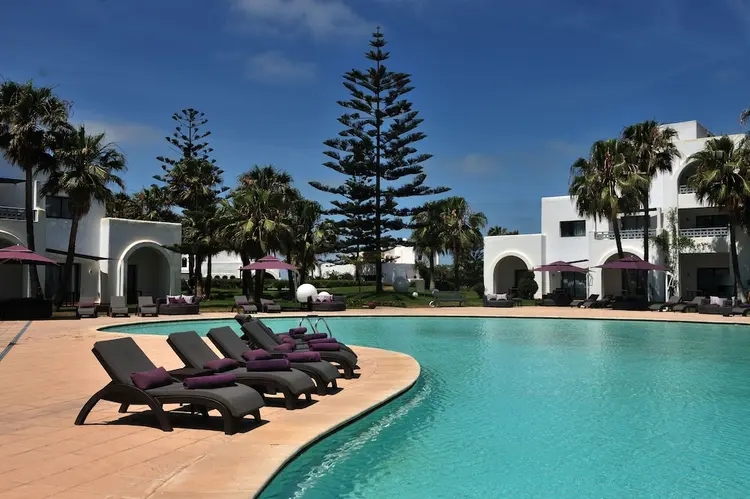 Le resort bénéficie d'un emplacement privilégié à environ 7 km du centre d'El Jadida et à proximité immédiate de l'océan. Casablanca se situe à environ 90 km, soit un peu plus d'une heure de route. L'hôtel est implanté dans un environnement naturel calme, entre forêt, golf et littoral, offrant un cadre propice à la détente.